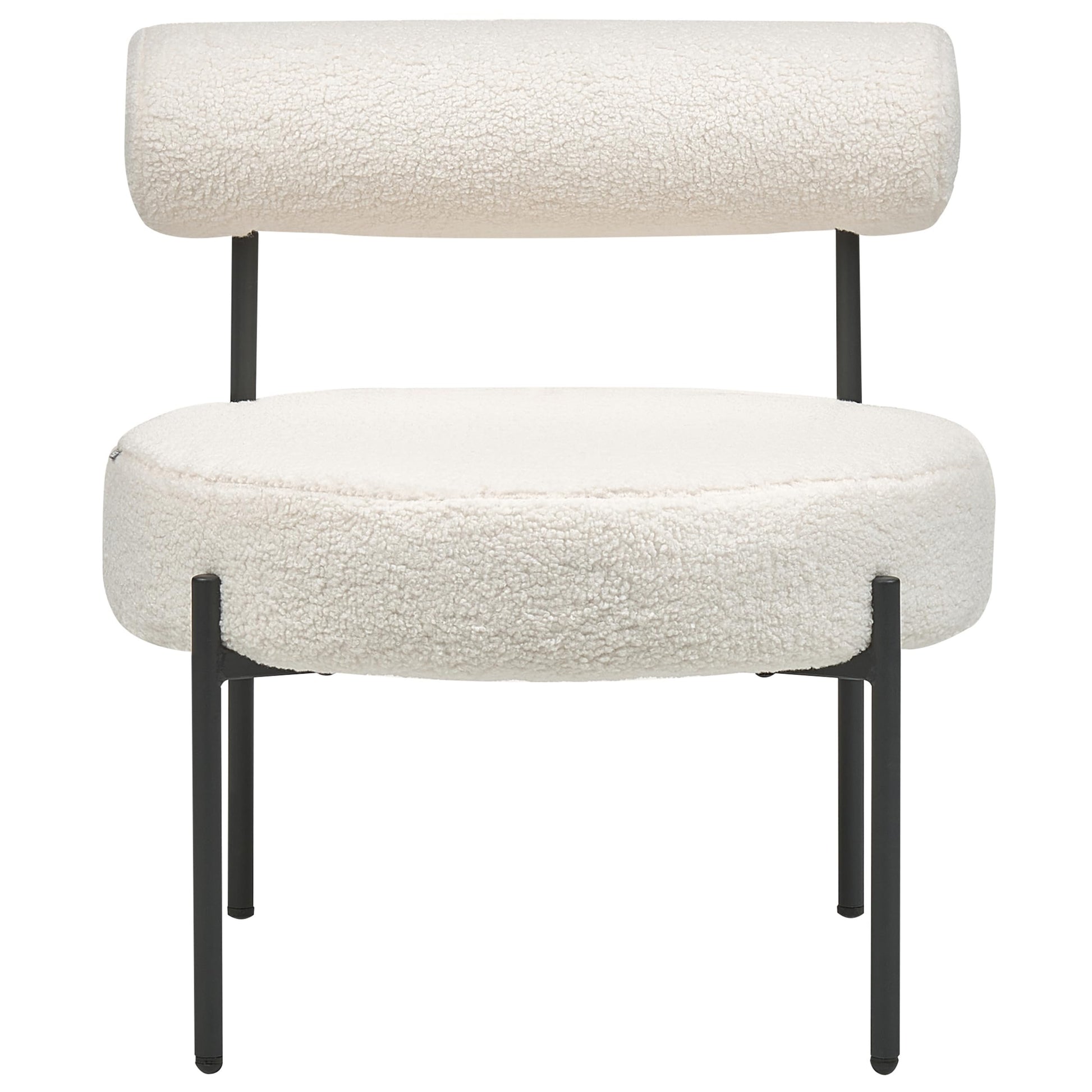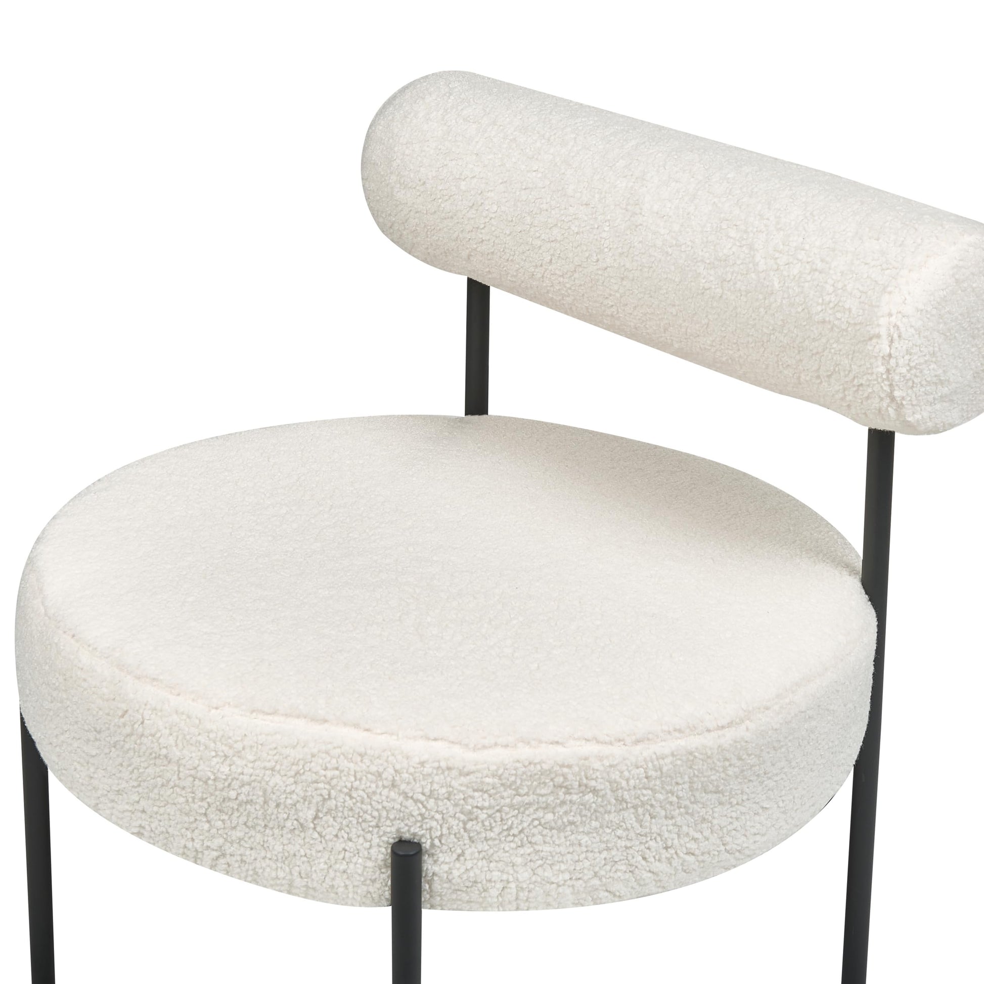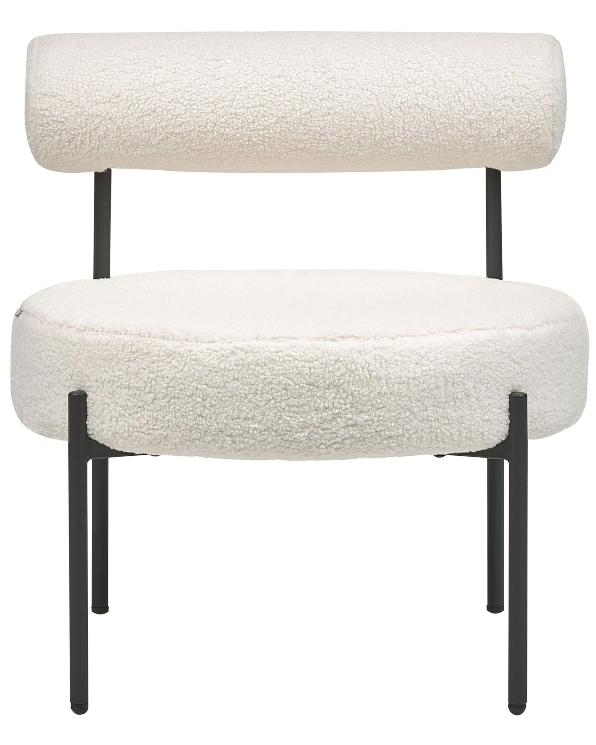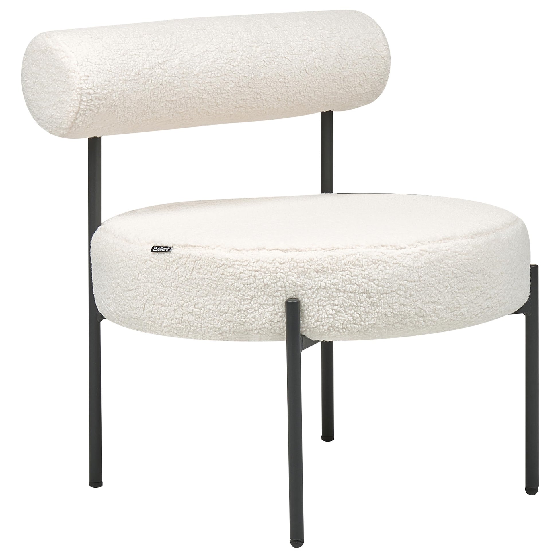 Fotel bez podłokietników Boucle – Okrągłe siedzisko i oparcie, biały, retro styl - nowoczesny fotel metalowo-materiałowy