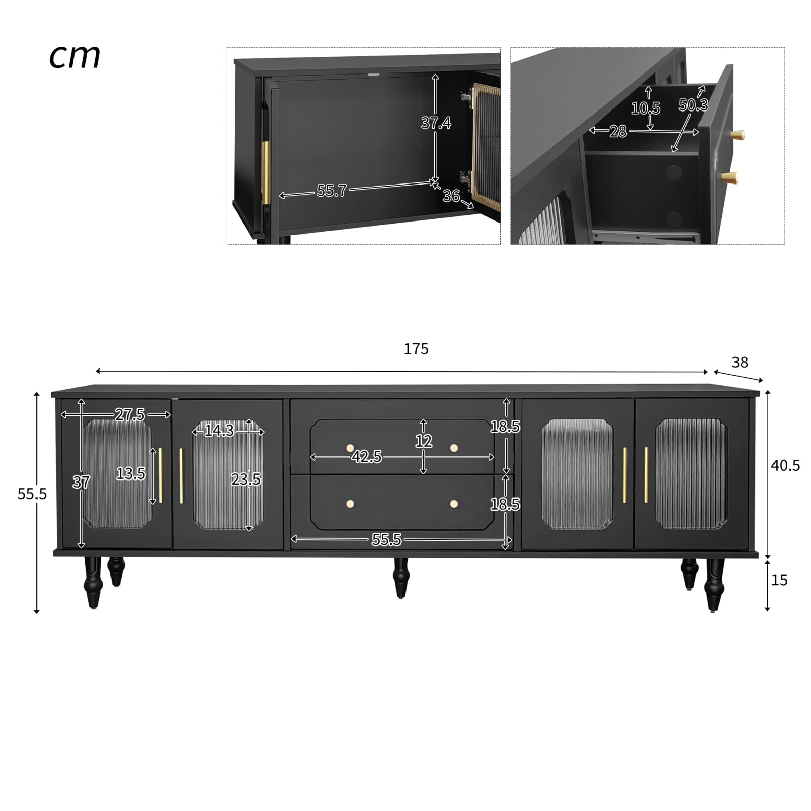 Nasza szafka pod telewizor zapewnia wystarczająco dużo miejsca na duże telewizory oraz inne urządzenia multimedialne. Dzięki wymiarom 175 x 38 x 55,5 cm, mebel ten pomieści wszystkie niezbędne akcesoria, jednocześnie zachowując elegancki wygląd Twojego salonu.