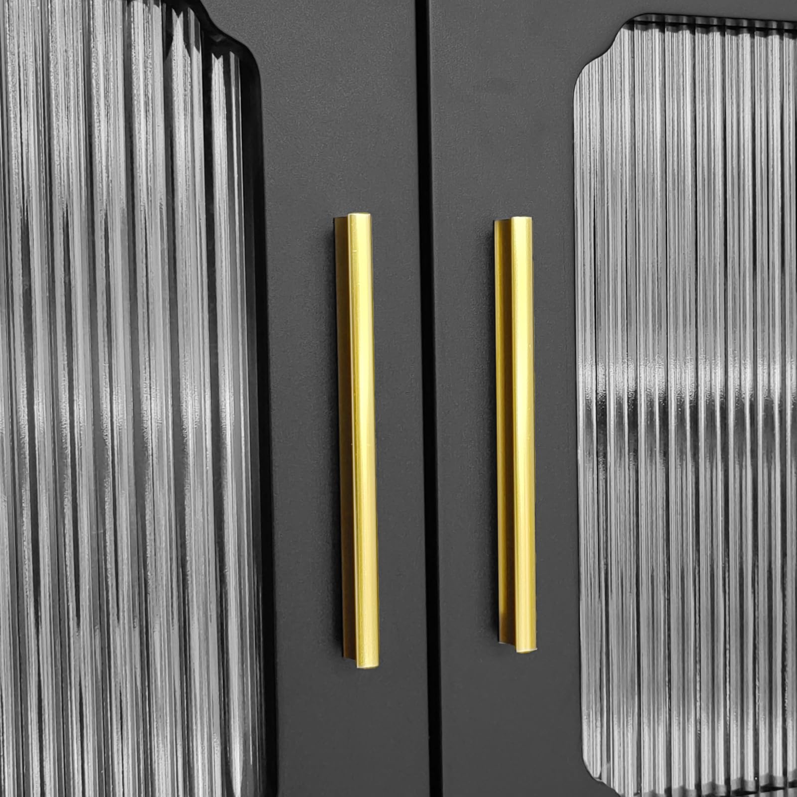 Złote uchwyty oraz metalowe nóżki podkreślają luksusowy charakter szafki, dodając jej blasku i stylu. Te subtelne detale sprawiają, że mebel staje się centralnym punktem każdego salonu, łącząc funkcjonalność z estetyką.
