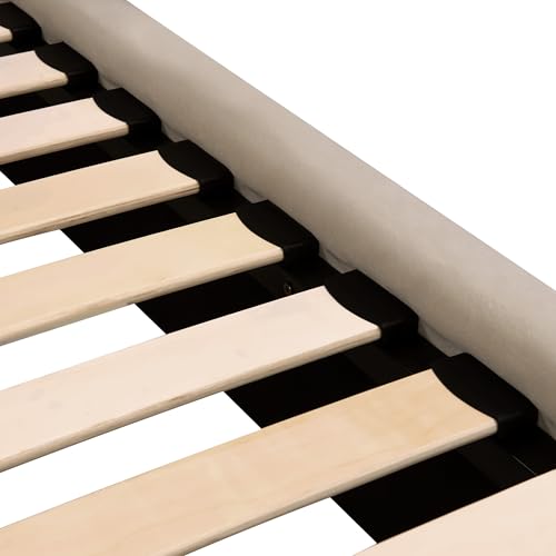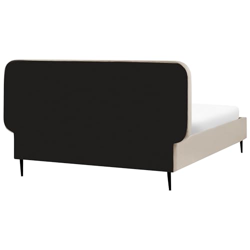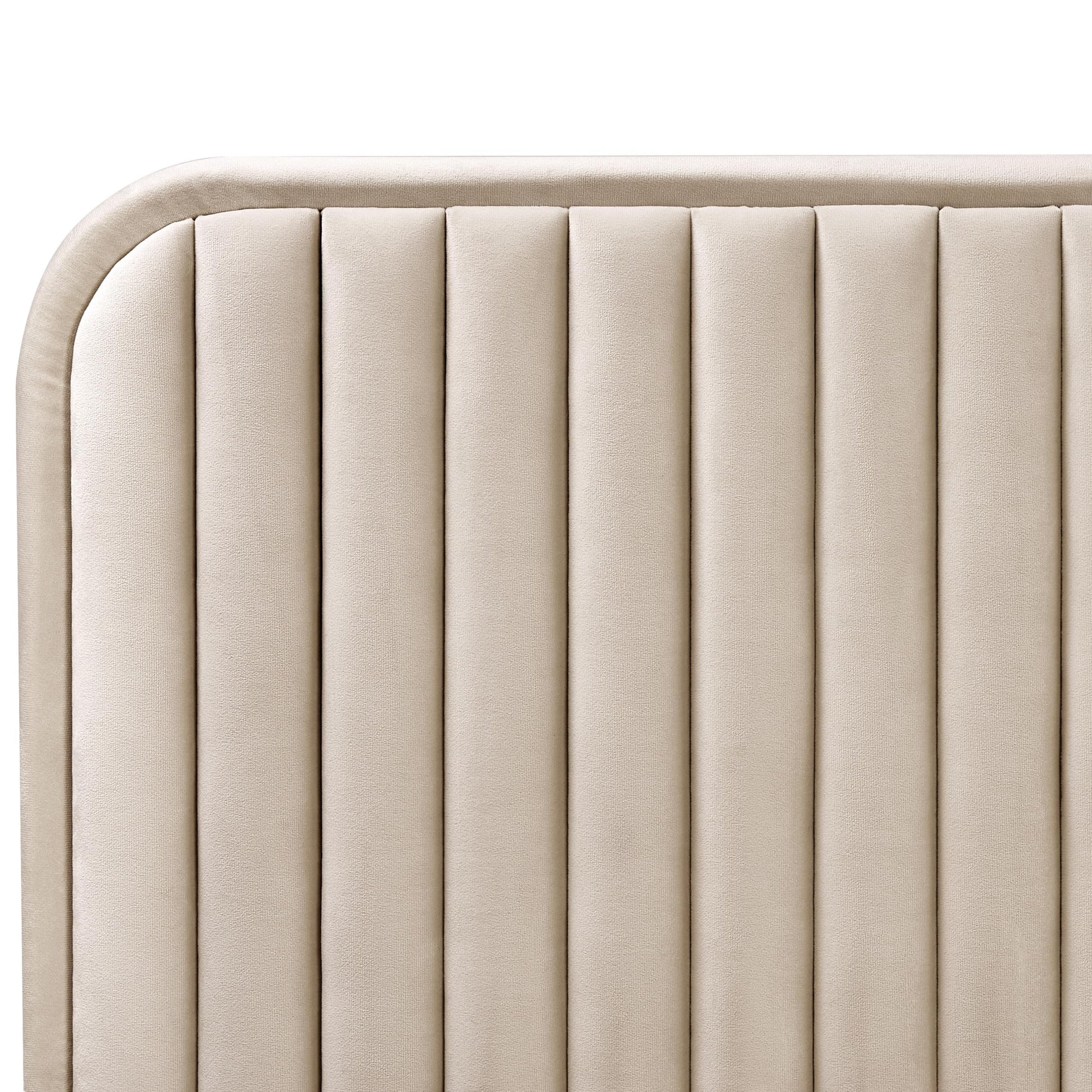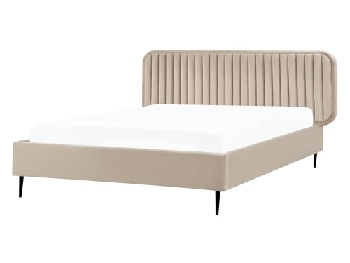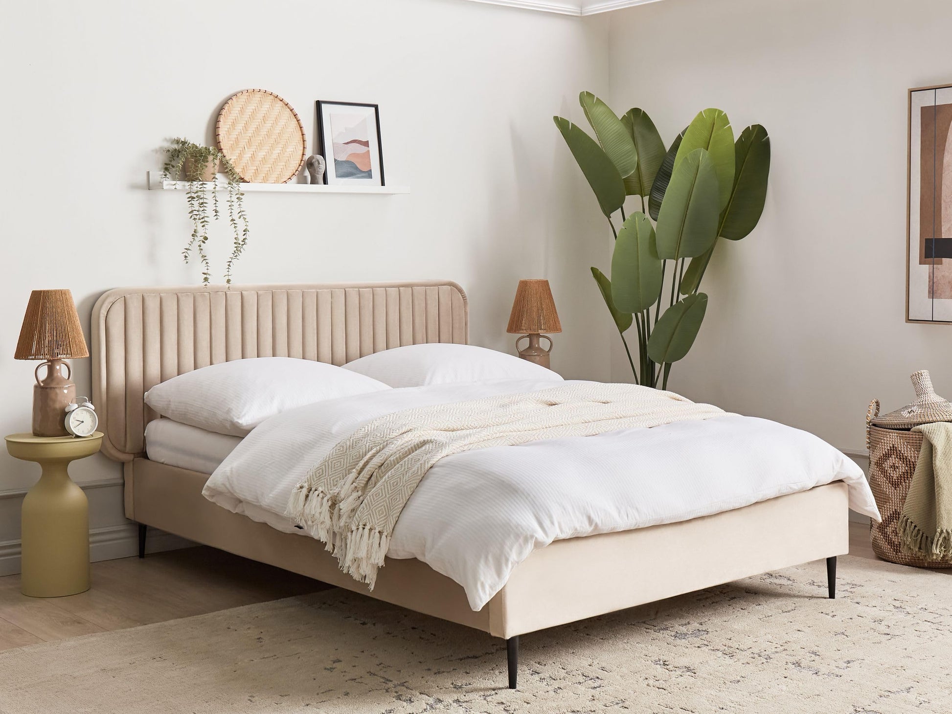 Beżowe łóżko welurowe tapicerowane z wezgłowiem 140 x 200 cm, metalowe nóżki, beżowoszare łóżko tapicerowane 140cm